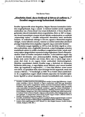 Vér, Eszter Virág (2016) "Kíméletlen fiatal, dacos királynak új hitvese jó szelleme is..." : Erzsébet magyarországi kultuszának kialakulása = “The merciless, young and defiant king’s new spouse is his good spirit”. The development of the cult of Elisabeth in Hungary. LEVÉLTÁRI KÖZLEMÉNYEK, 87 (1-2). pp. 93-104. ISSN 0024-1512