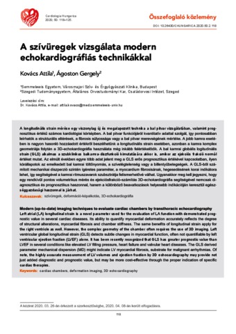 Kovács, Attila and Ágoston, Gergely (2020) A szívüregek vizsgálata modern echokardiográfiás technikákkal = Modern (up-to-date) imaging techniques to evaluate cardiac chambers by transthoracic echocardiography. Cardiologia Hungarica, 50 (2). pp. 118-125. ISSN 0133-5596