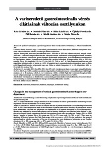 Rácz, Sándor and Molnár, Péter and Héra, László and Újhelyi, Piroska and Páll, István and Sebők, Andrea and Sahin, Péter (2020) A varixeredetű gastrointestinalis vérzés ellátásának változása osztályunkon = Changes in the management of variceal gastrointestinal haemorrhage in our department. Orvosi Hetilap, 161 (15). pp. 583-587. ISSN 0030-6002 (print); 1788-6120 (online)