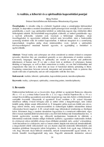Sőreg, Norbert (2014) A realitás, a kibertér és a spiritualitás kapcsolódási pontjai. GRADUS, 1 (1). pp. 34-40. ISSN 2064-8014
