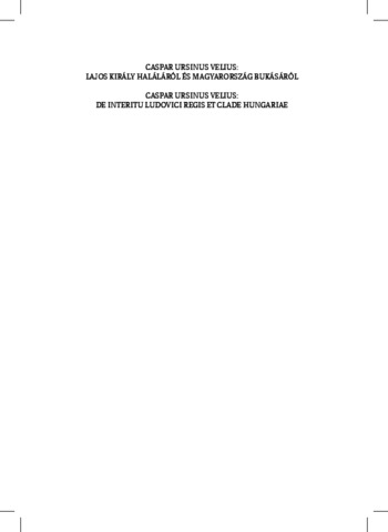 Ursinus Velius, Caspar and Kasza, Péter and Tóth, Gergely and Szebelédi, Zsolt and Szilágyi, Emőke Rita (2020) Lajos király haláláról és Magyarország bukásáról: Egy elveszettnek hitt beszámoló a mohácsi csatáról – De interitu Ludovici regis et clade Hungariae: A long-lost report about the battle of Mohács. Mohács 1526-2026: Rekonstrukció és emlékezet . Bölcsészettudományi Kutatóközpont, Országos Széchényi Könyvtár, Budapest. ISBN 978-963-416-223-0