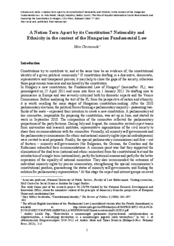 Chronowski, Nóra (2019) A Nation Torn Apart by its Constitution? Nationality and Ethnicity in the Context of the Hungarian Fundamental Law. In: The Rise of Populist Nationalism: Social Resentments and Capturing the Constitution in Hungary. CEU Press, Budapest, pp. 77-103.