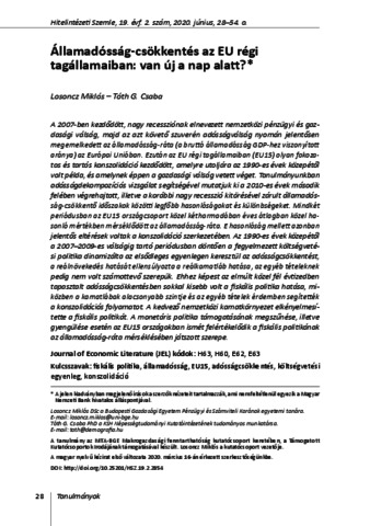 Losoncz, Miklós and Tóth, G. Csaba (2020) Államadósság-csökkentés az EU régi tagállamaiban: van új a nap alatt? HITELINTÉZETI SZEMLE / FINANCIAL AND ECONOMIC REVIEW, 19 (2). pp. 28-54. ISSN 1588-6883