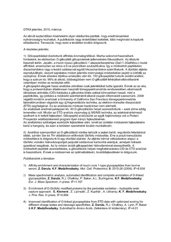 Medzihradszky, Katalin and Darula, Zsuzsanna and Hunyadi-Gulyás, Éva Csilla and Juhász, Márton and Klement, Éva (2011) Módszerfejlesztés fehérje-glikoziláció analízisére = Method development for protein glycosylation analysis. Project Report. OTKA.