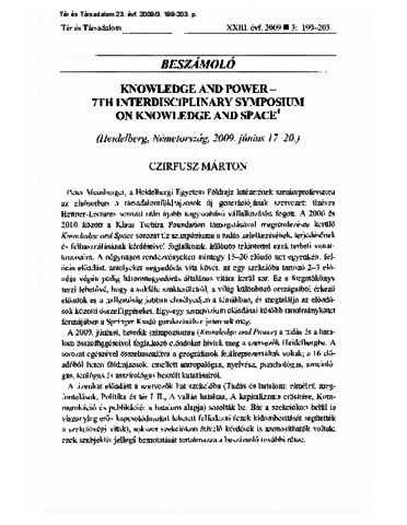 Czirfusz, Márton (2009) Knowledge and Power – 7th Interdisciplinary Symposium on Knowledge and Space. Tér és Társadalom, 23 (3). pp. 199-203. ISSN 0237-7683