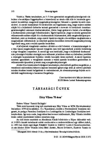 Kiss, Gábor (2020) Eőry Vilma 70 éves. MAGYAR NYELV, 116 (3). pp. 372-375. ISSN 0025-0228