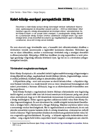 Csiki, Tamás and Tálas, Péter Henrik and Varga, Gergely (2014) Kelet-közép-európai perspektívák 2030-ig. NEMZET ÉS BIZTONSÁG: BIZTONSÁGPOLITIKAI SZEMLE, 2014 (2). pp. 36-44. ISSN 1789-5286