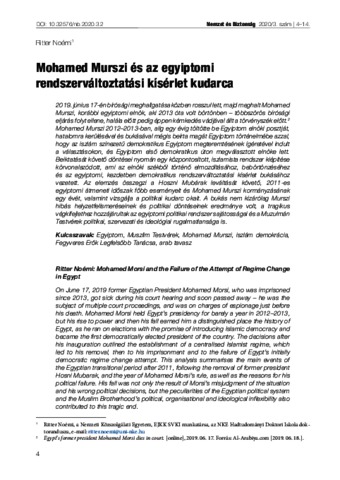 Ritter, Noémi (2020) Mohamed Murszi és az egyiptomi rendszerváltoztatási kísérlet kudarca. NEMZET ÉS BIZTONSÁG: BIZTONSÁGPOLITIKAI SZEMLE, 13 (3). pp. 4-14. ISSN 1789-5286