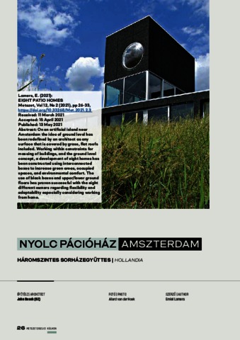 Lamers, Emiel (2021) Nyolc pációház = Eight Patio Homes. METSZET, 12 (2). pp. 26-31. ISSN 2061-2710