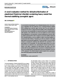 Al-Mosawi, Ali I. (2021) A Novel Evaluation Method for Dehydrochlorination of Plasticized Poly(vinyl chloride) Containing Heavy Metal Free Thermal Stabilizing Synergistic Agent. POLYMERS FOR ADVANCED TECHNOLOGIES, 32 (8). pp. 3278-3286. ISSN 1042-7147 (print); 1099-1581 (online)
