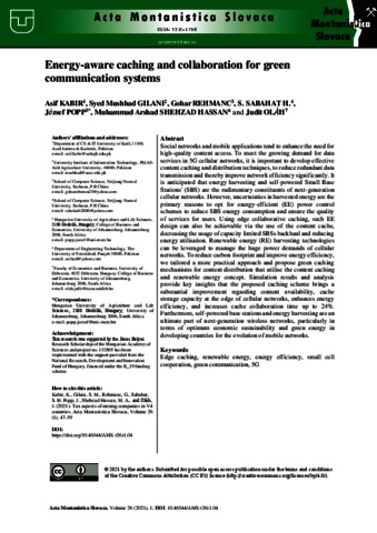 Kabir, Asif and Gilani, Syed Mushhad and Rehmanc, Gohar and Sabath H., S. and Popp, József and Hassan, Muhammad Arshad Shehzad and Oláh, Judit (2021) Energy-aware caching and collaboration for green communication systems. ACTA MONTANISTICA SLOVACA, 26 (1). pp. 47-59. ISSN 1335-1788