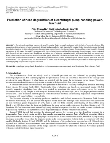 Csizmadia, Péter and Lukácsi, Dávid Lajos and Till, Sára (2021) Prediction of head degradation of a centrifugal pump handling power-law fluid. In: International Conference on Fluid Flow and Thermal Science (ICFFTS'20). (In Press)