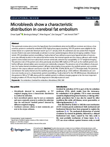 Giyab, Omar and Balogh, Bendegúz and Bogner, Péter and Gergely, Orsi and Tóth, Arnold (2021) Microbleeds show a characteristic distribution in cerebral fat embolism. INSIGHTS INTO IMAGING, 12 (1). ISSN 1869-4101
