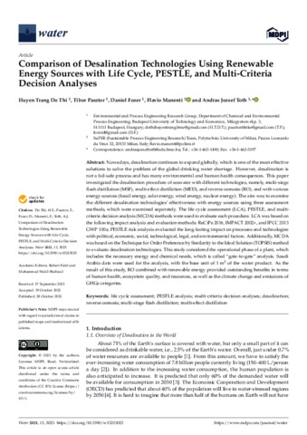 Do Thi, Huyen Trang and Pásztor, Tibor and Fózer, Dániel and Manenti, Flavio and Tóth, András József (2021) Comparison of Desalination Technologies Using Renewable Energy Sources with Life Cycle, PESTLE and Multi-Criteria Decision Analyses. WATER, 13 (21). pp. 1-27. ISSN 2073-4441
