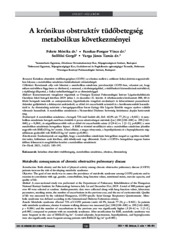 Fekete, Mónika and Fazekas-Pongor, Vince and Szőllősi, Gergő József and Varga, János Tamás (2021) A krónikus obstruktív tüdőbetegség metabolikus következményei = Metabolic consequences of chronic obstructive pulmonary disease. ORVOSI HETILAP, 162 (5). pp. 185-191. ISSN 0030-6002