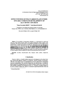 Reddy, Panga Narasimha and Naqash, Javed Ahmed (2020) Effectiveness of Polycarboxylate Ether on Early Strength Development of Alccofine Concrete. POLLACK PERIODICA : AN INTERNATIONAL JOURNAL FOR ENGINEERING AND INFORMATION SCIENCES, 15 (1). pp. 79-90. ISSN 1788-1994 (print); 1788-3911 (online)