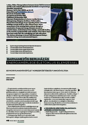 Lekics, Gábor (2021) Barnamezős beruházás energiamérlege életciklus-elemzéssel : Egykori ruhagyári épület korszerűsítése és funkcióváltása = Energy balance between brown field investment and life cycle analysis. METSZET, 12 (6). pp. 46-49. ISSN 2061-2710