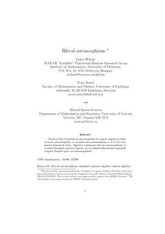 Molnár, Lajos (2014) Bilocal automorphisms. OPERATORS AND MATRICES, in pre. in press. ISSN 1846-3886