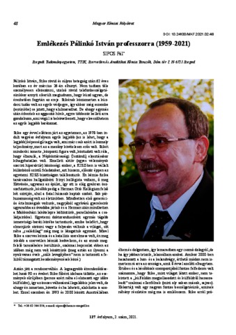 Sipos, Pál Miklós (2021) Emlékezés Pálinkó István professzorra (1959-2021). MAGYAR KÉMIAI FOLYÓIRAT - KÉMIAI KÖZLEMÉNYEK (1997-), 127 (2). pp. 48-51. ISSN 1418-9933