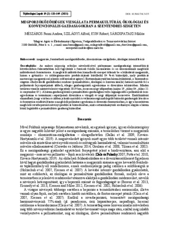 Mészáros, Fanni Andrea and Szilágyi, Alfréd János and Kun, Róbert and Sárospataki, Miklós György (2021) Megporzóközösség vizsgálata permakultúrás, ökológiai és konvencionális gazdaságokban a Szentendrei-szigeten. TÁJÖKOLÓGIAI LAPOK, 19 (2). pp. 133-149. ISSN 1589-4673