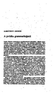 Karácsony, András (1997) A politika grammatikájáról. POLITIKATUDOMÁNYI SZEMLE, 6 (1). pp. 147-152. ISSN 1216-1438