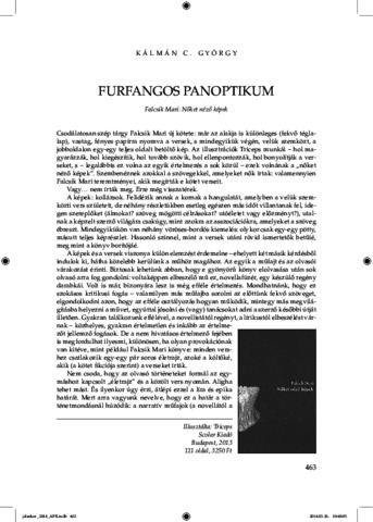 Kálmán C., György (2014) Furfangos panoptikum. Falcsik Mari: Nőket néző képek. JELENKOR - IRODALMI ÉS MŰVÉSZETI FOLYÓIRAT, 57 (4). pp. 463-466. ISSN 0447-6425