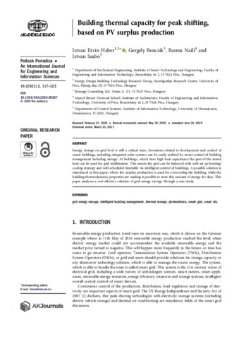 Háber, István Ervin and Bencsik, Gergely and Naili, Basma and Szabó, István (2021) Building Thermal Capacity for Peak Shifting, based on PV Surplus Production. POLLACK PERIODICA : AN INTERNATIONAL JOURNAL FOR ENGINEERING AND INFORMATION SCIENCES, 16 (2). pp. 117-123. ISSN 1788-1994 (print); 1788-3911 (online)