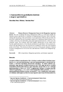 Petrás, Viktória and Bertalan, Péter (2019) A humánerőforrás-gazdálkodás kérdései a magyar agráriumban = Human Resource Management Issues in the Hungarian Agrarian Sector. ACTA SCIENTIARUM SOCIALIUM : HISTORIA, OECONOMIA, PAEDAGOGIA, PHILOSOPHIA, SOCIOLOGIA (49). pp. 61-77. ISSN 1418-7191