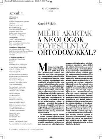Konrád, Miklós (2019) Miért akartak a neológok egyesülni az ortodoxokkal? SZOMBAT, 31 (8). pp. 4-7. ISSN 0865-3844