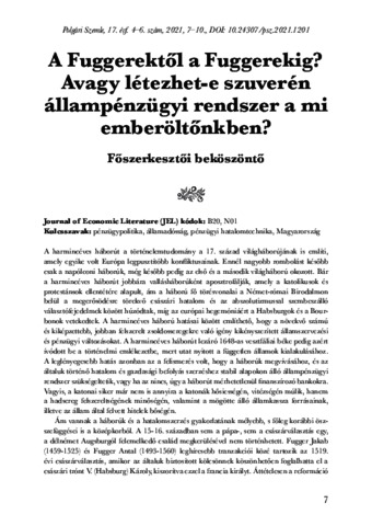 Lentner, Csaba (2021) A Fuggerektől a Fuggerekig? Avagy létezhet-e szuverén állampénzügyi rendszer a mi emberöltőnkben? : Főszerkesztői beköszöntő. POLGÁRI SZEMLE : GAZDASÁGI ÉS TÁRSADALMI TUDOMÁNYOS FOLYÓIRAT = CIVIC REVIEW : JOURNAL OF ECONOMIC AND SOCIAL SCIENCES, 17 (4-6). pp. 7-10. ISSN 1786-6553 (nyomtatott); 1786-8823 (elektronikus)