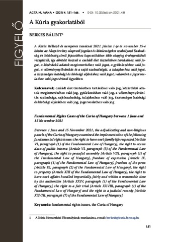 Berkes, Bálint (2021) A Kúria gyakorlatából = Fundamental Rights Cases of the Curia of Hungary between 1 June and 15 November 2021. ACTA HUMANA : EMBERI JOGI KÖZLEMÉNYEK, 9 (4). pp. 151-166. ISSN 0866-6628 (nyomtatott); 2786-0728 (elektronikus)