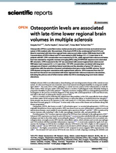 Orsi, Gergely and Hayden, Zsófia and Cseh, Tamás and Berki, Tímea and Illés, Zsolt (2021) Osteopontin Levels Are associated with Late‑Time Lower Regional Brain Volumes in Multiple Sclerosis. SCIENTIFIC REPORTS, 11. pp. 1-7. ISSN 2045-2322
