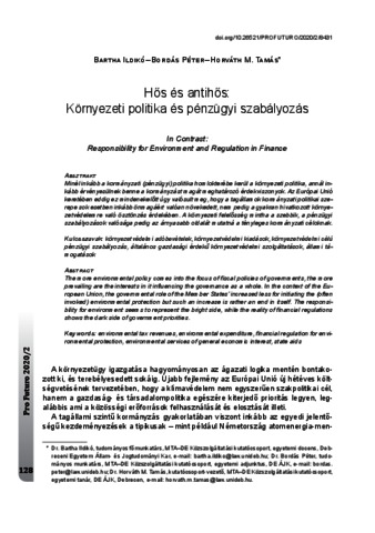 Bartha, Ildikó and Bordás, Péter and Horváth M., Tamás (2020) Hős és antihős: Környezeti politika és pénzügyi szabályozás = In Contrast: Responsibility for Environment and Regulation in Finance. PRO FUTURO : A JÖVŐ NEMZEDÉKEK JOGA, 10 (2). pp. 128-155. ISSN 2063-1987 (nyomtatott); 2063-2754 (elektronikus)