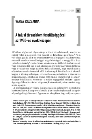 Varga, Zsuzsanna (2006) A falusi társadalom feszültséggócai az 1950-es évek közepén. MÚLTUNK - POLITIKATÖRTÉNETI FOLYÓIRAT, 51 (4). pp. 223-239. ISSN 0864-960X (nyomtatott) | 2677-156X (online)
