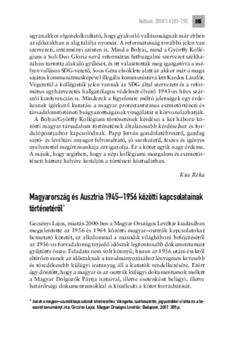 Baráth, Magdolna (2008) Magyarország és Ausztria 1945–1956 közötti kapcsolatainak történetéről (könyvismertető). MÚLTUNK - POLITIKATÖRTÉNETI FOLYÓIRAT, 53 (3). pp. 285-290. ISSN 0864-960X (nyomtatott) | 2677-156X (online)
