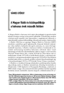 Vámosi, György (2008) A Magyar Rádió és közléspolitikája a hatvanas évek második felében. MÚLTUNK - POLITIKATÖRTÉNETI FOLYÓIRAT, 53 (3). pp. 173-186. ISSN 0864-960X (nyomtatott) | 2677-156X (online)
