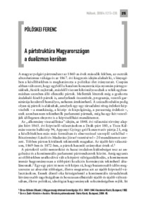 Pölöskei, Ferenc (2008) A pártstruktúra Magyarországon a dualizmus korában. MÚLTUNK - POLITIKATÖRTÉNETI FOLYÓIRAT, 53 (4). pp. 215-230. ISSN 0864-960X (nyomtatott) | 2677-156X (online)