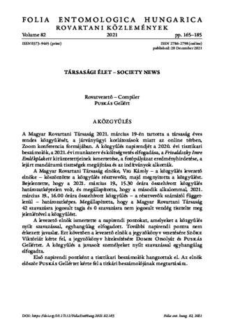 Puskás, Gellért (2021) Társasági élet = Society News. FOLIA ENTOMOLOGICA HUNGARICA, 82. pp. 165-185. ISSN 0373-9465 (print); 2786-2798 (online)