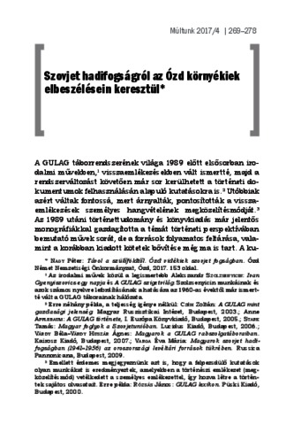 Vámos, Gabriella (2017) Szovjet hadifogságról az Ózd környékiek elbeszélésein keresztül (könyvismertető). MÚLTUNK - POLITIKATÖRTÉNETI FOLYÓIRAT, 62 (4). pp. 269-278. ISSN 0864-960X (nyomtatott) | 2677-156X (online)