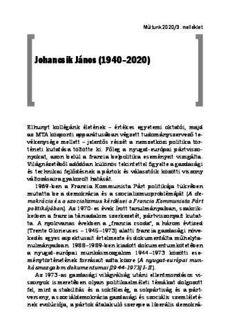 Benkes, Mihály (2020) Johancsik János (1940–2020). MÚLTUNK - POLITIKATÖRTÉNETI FOLYÓIRAT, 65 (3). pp. 3-4. ISSN 0864-960X (nyomtatott) | 2677-156X (online)
