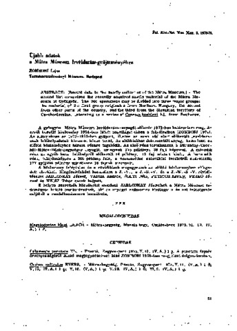Zombori, Lajos (1978) Újabb adatok a Mátra Múzeum levéldarázs-gyűjteményéhez. Folia historico-naturalia Musei Matraensis, 5. pp. 51-55. ISSN 0134-1243
