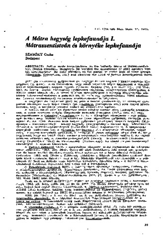 Szabóky, Csaba (1986) A Mátra-hegység lepkefaunája I. Mátraszentistván és környéke lepkefaunája. Folia historico-naturalia Musei Matraensis, 11. pp. 35-48. ISSN 0134-1243
