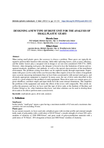 Marada, Imre and Bihari, János (2021) Designing a New Type of Drive Unit for the Analysis of Small Plastic Gears. MULTIDISZCIPLINÁRIS TUDOMÁNYOK, 11 (5). pp. 245-250. ISSN 2786-1465