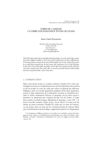 Majorossy, Imre Gábor (2004) Verbe de l'amour? Le verbe païr dans deux textes occitans. VERBUM: ANALECTA NEOLATINA, 6 (1). pp. 255-273. ISSN 1585-079X