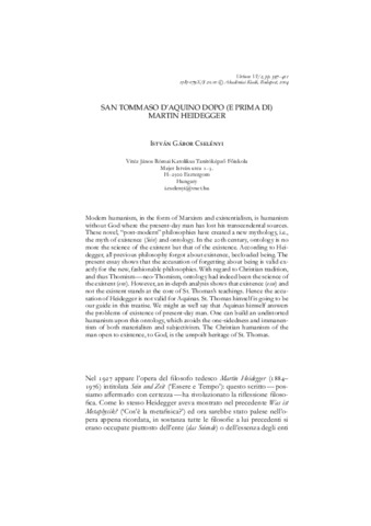 Cselényi, István Gábor (2004) San Tommaso D'Aquino dopo (e prima di) Martin Heidegger. VERBUM: ANALECTA NEOLATINA, 6 (2). pp. 397-411. ISSN 1585-079X