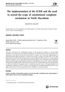 Sinani, Blerton (2021) The implementation of the ECHR and the need to extend the scope of consitutional complaint mechanism in North Macedonia. HUNGARIAN JOURNAL OF LEGAL STUDIES, 62 (2). pp. 162-183. ISSN 2498-5473