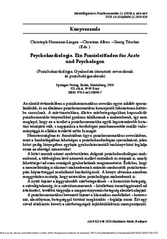 Tiringer, István (2020) Könyvszemle: Christoph Hermann-Lingen, Christian Albus, Georg Titscher (Eds.): Psychokardiologie. Ein Praxisleitfaden für Ärzte und Psychologen. MENTÁLHIGIÉNÉ ÉS PSZICHOSZOMATIKA, 21 (4). pp. 446-448. ISSN 1419-8126