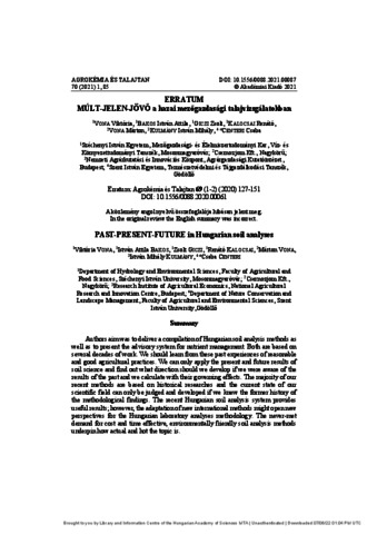 [15882713 - Agrokémia és Talajtan] ERRATUM_ MÚLT-JELEN-JÖVŐ a hazai mezőgazdasági talajvizsgálatokban.pdf Download (413kB) | Preview |