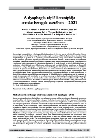 Kovács, Andrea and Szabó, Pál Tamás and Óváry, Csaba and Molnár, Andrea and Veresné Bálint, Márta and Béres-Molnár, Katalin Anna and Folyovich, András (2021) A dysphagia táplálásterápiája stroke-betegek esetében - 2021. ORVOSI HETILAP, 162 (40). pp. 1601-1609. ISSN 0030-6002