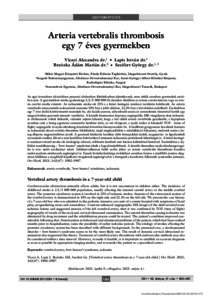 Viczei, Alexandra and Lapis, István and Brzózka, Ádám Marián and Szeifert, György (2021) Arteria vertebralis thrombosis egy 7 éves gyermekben = Vertebral artery thrombosis in a 7-year-old child. ORVOSI HETILAP, 162 (47). pp. 1902-1907. ISSN 0030-6002